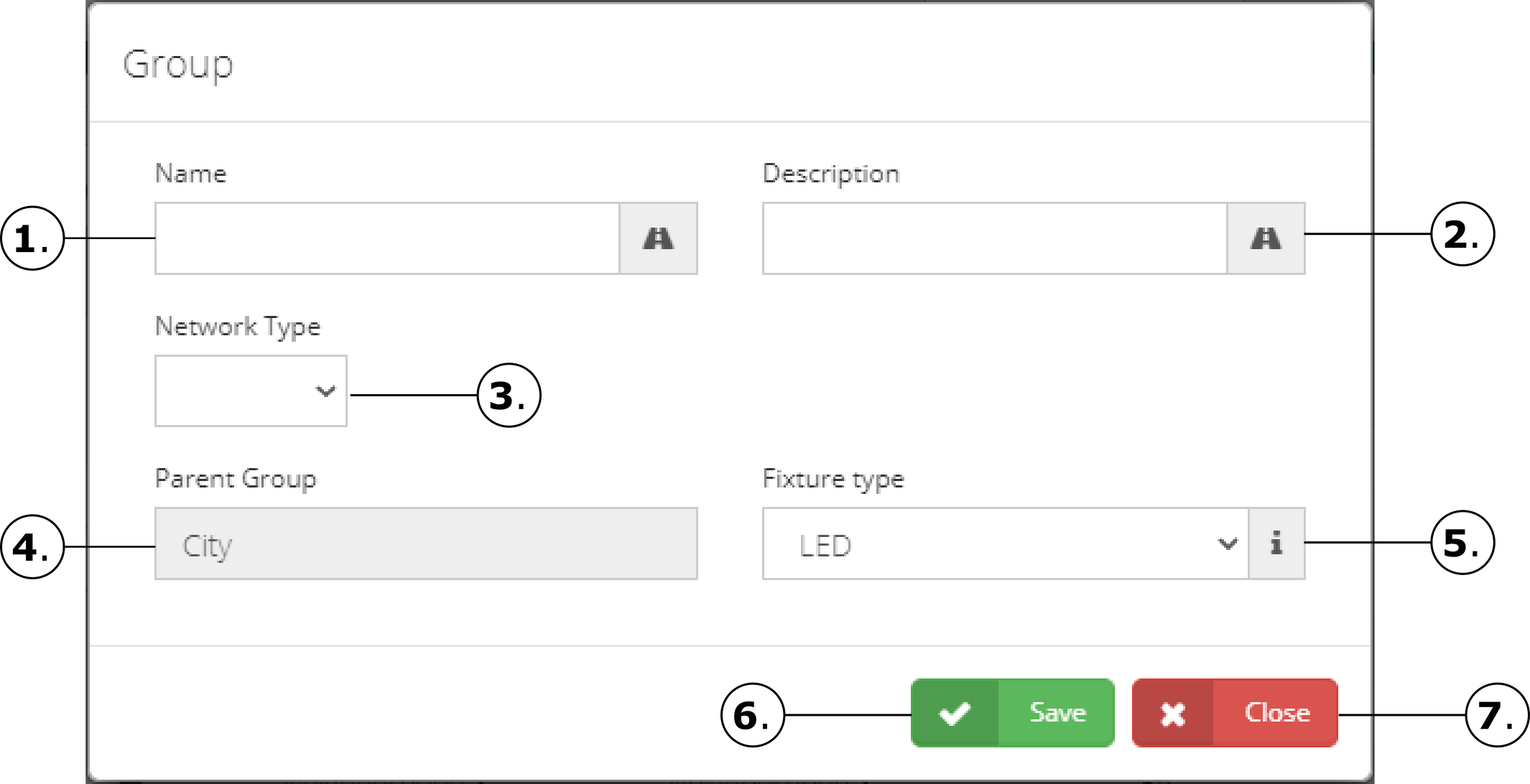 Note: If the group have associated fixtures or child groups created, this button will remain disabled.